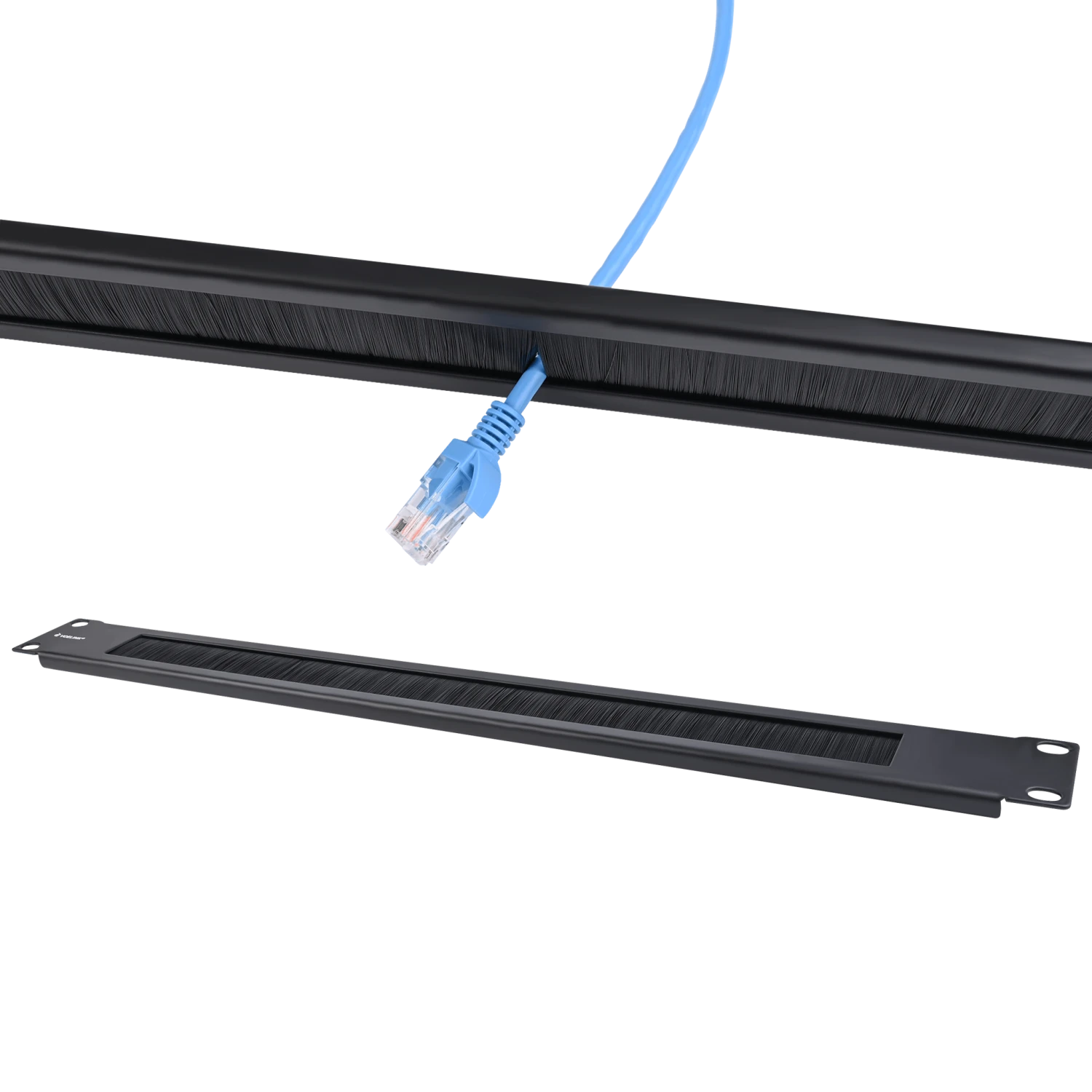 VCELINK 1U 19-inch Pass Through Brush Panel is an essential component in IT racks. This pass-through brush panel is designed for efficient cable management and airflow in the standard racks and cabinets. It is a simple solution to organize and manage your cabling, such as fiber optic, copper, and coaxial cables. Made of steel and nylon bristles, the brush panel offers added durability. Use this horizontal cable manager toorganize patch cables, improve airflow, and reduces dust in your data centers, server rooms, or other network setups.