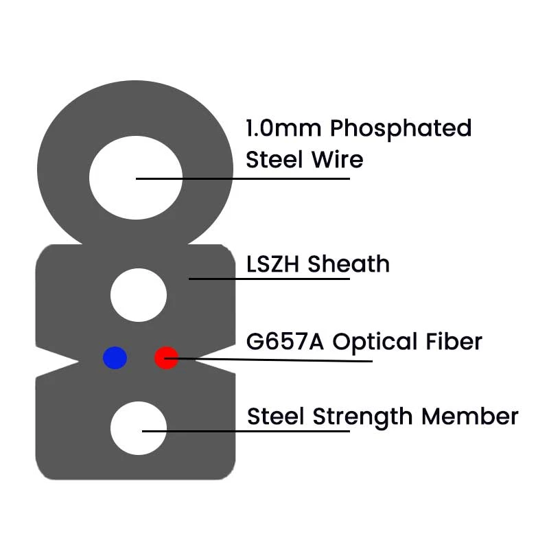 VCELINK 2 core fiber cable is a versatile and cost-effective solution for various applications. Its small diameter and lightweight construction allow it to be installed quickly and efficiently using mechanical splicing technology. The cable is strengthened with Phosphated Steel Wire and is specifically designed to be bend-insensitive. Self-supporting Phosphated Steel Wire is recommended for superior tensile properties.