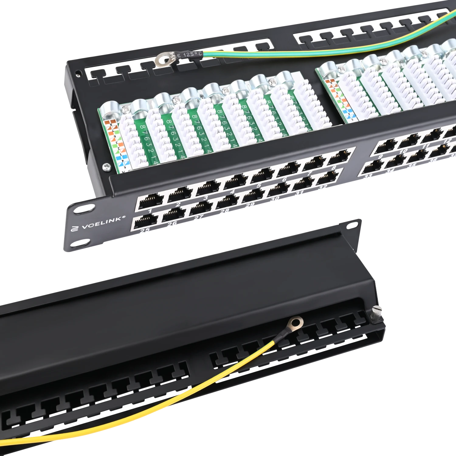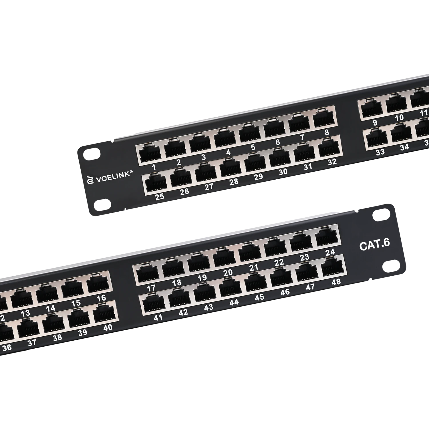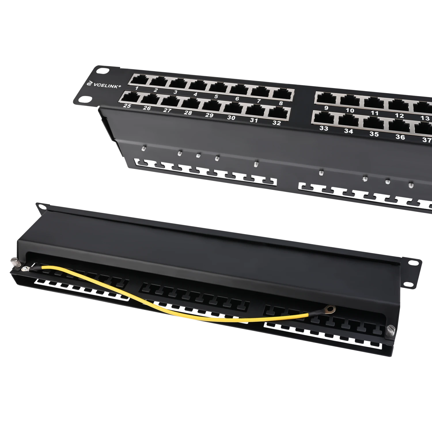 Our 48-port Cat6 shielded patch panel with 1U form factor is designed for high-density environments such as enterprise data centers and telecommunication industry. It provides Cat6 speed and protection against electromagnetic interference (EMI). The 1U size makes it compatible with standard 19-inch rack mounts, optimizing space effectively. The fully shielded housing and enclosed IDC terminals provide enhanced protection for connected Cat6 cables. Use our high-density shielded patch panel for your Gigabit Ethernet, data center management, and enterprise server room.
