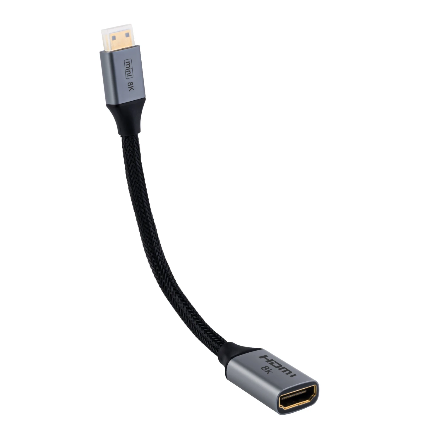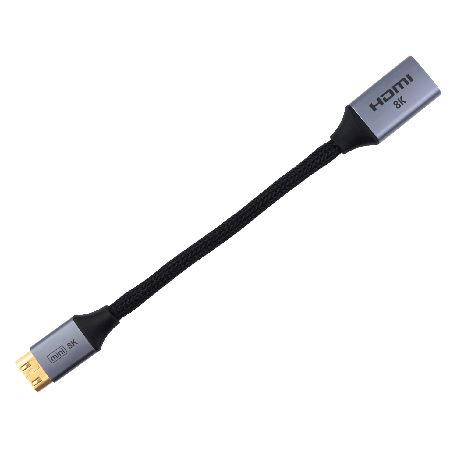 VCELINK 8K Mini HDMI to HDMI Cable supports HDMI 2.1 with resolutions up to 8K@60Hz, delivering sharp video from Mini HDMI devices to HDMI displays. Built with triple shielding, gold-plated connectors, and an aluminum housing, it ensures stable signal transmission and durability. The 7-inch braided cable is lightweight, flexible, and plug-and-play, making it ideal for cameras, tablets, and other portable devices.