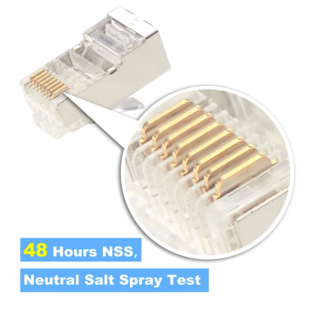 Our Shielded Cat6 RJ45 Modular Plug features a shielded design for interference resistance, ensuring a more stable and reliable network connection. With a capability of up to 1000Mbps (1Gbps), our shielded RJ45 connectors guarantee a fast and stable network connection.