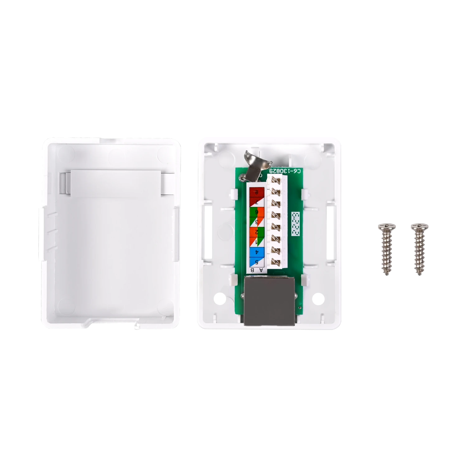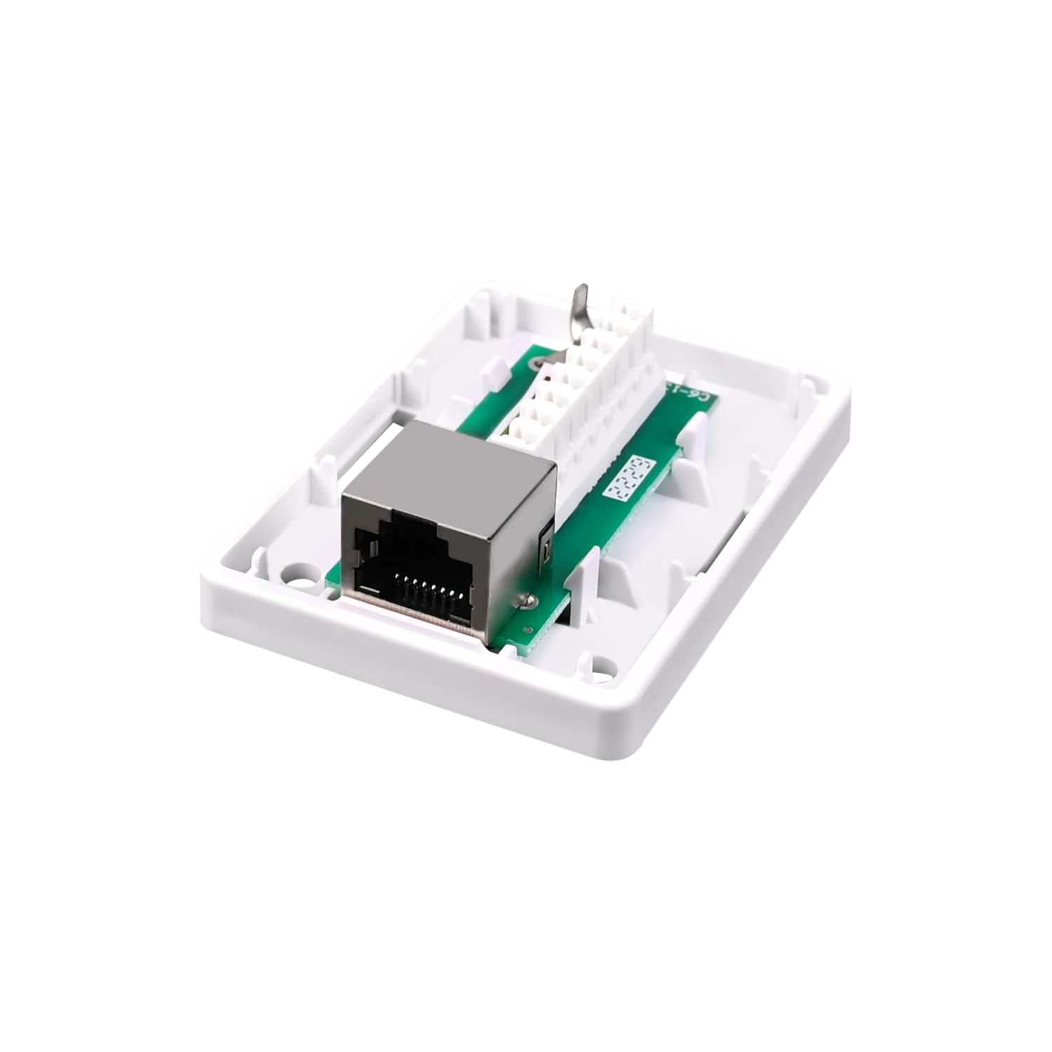 VCELINK wall mount box can secure to almost any surface, such as walls, baseboards, ceilings, and other locations, with the included double-sided adhesive or mounting screws. It supports color-coded T568A and T568B wiring standards for user convenience and to avoid incorrect wiring sequences. It is straightforward to extend your network.