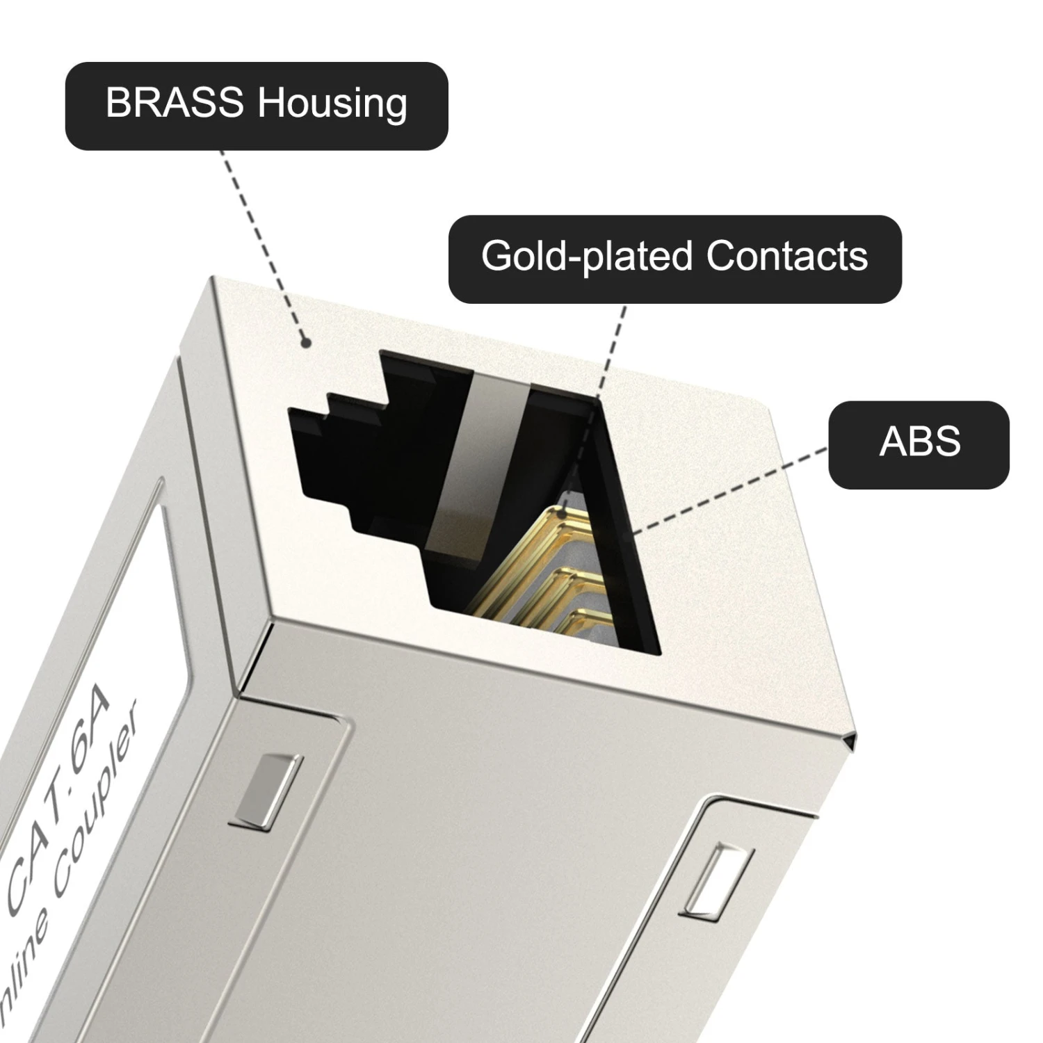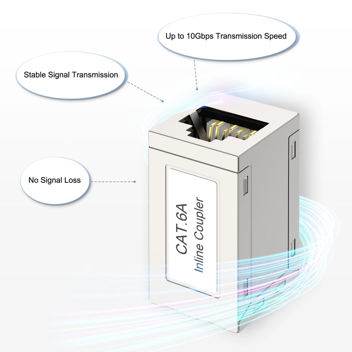 -Crafted with metal shielding, our Cat6a coupler provides resistance against EMI/RFI interference, ensuring optimal internet speed;