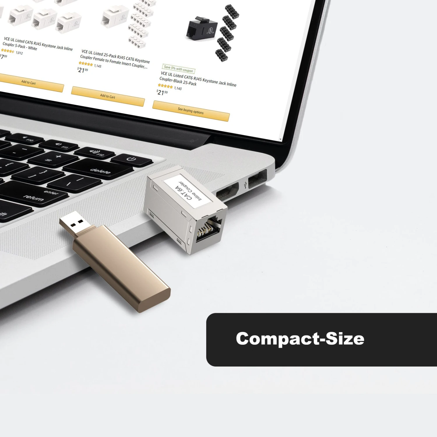 The shielded Cat6 coupler requires no tools for installation, making it an easy solution for extending Ethernet connections on the go and the snap-in design makes it suitable for both professionals and novices.