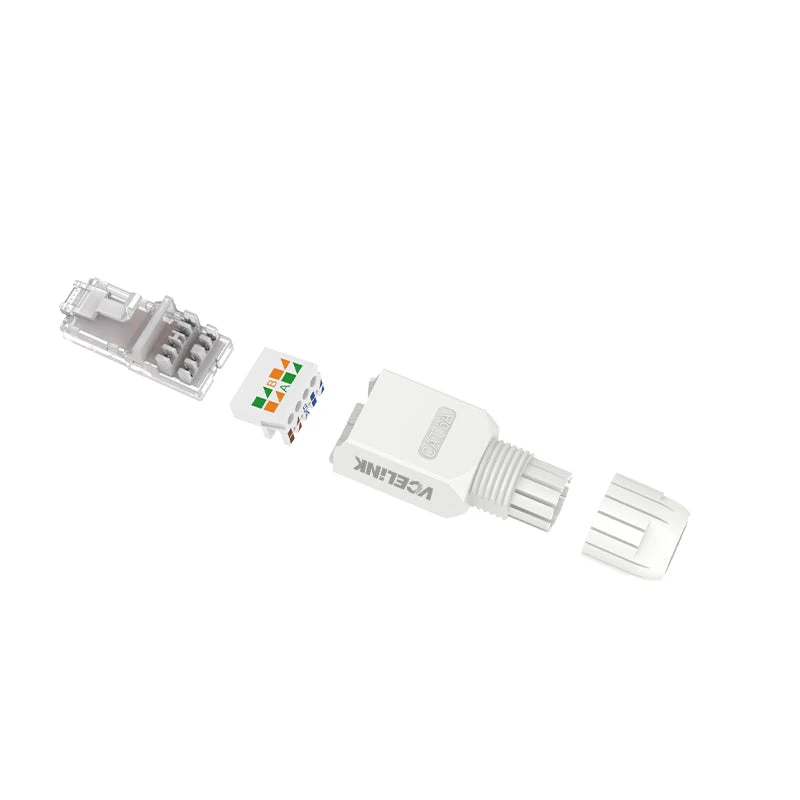 Simplify your network installations with VCELINK Cat6a RJ45 Plug. It is made of new PC materials for enhanced durability. Moreover, the Cat6a toolless connector is easy to install without any need for professional RJ45 crimping tools. The quick and easy installation makes this RJ45 connector more cost-effective than shielded toolless connectors if there is not much interference. The Cat6a connector is available in white, blue, and white for easy cable management.