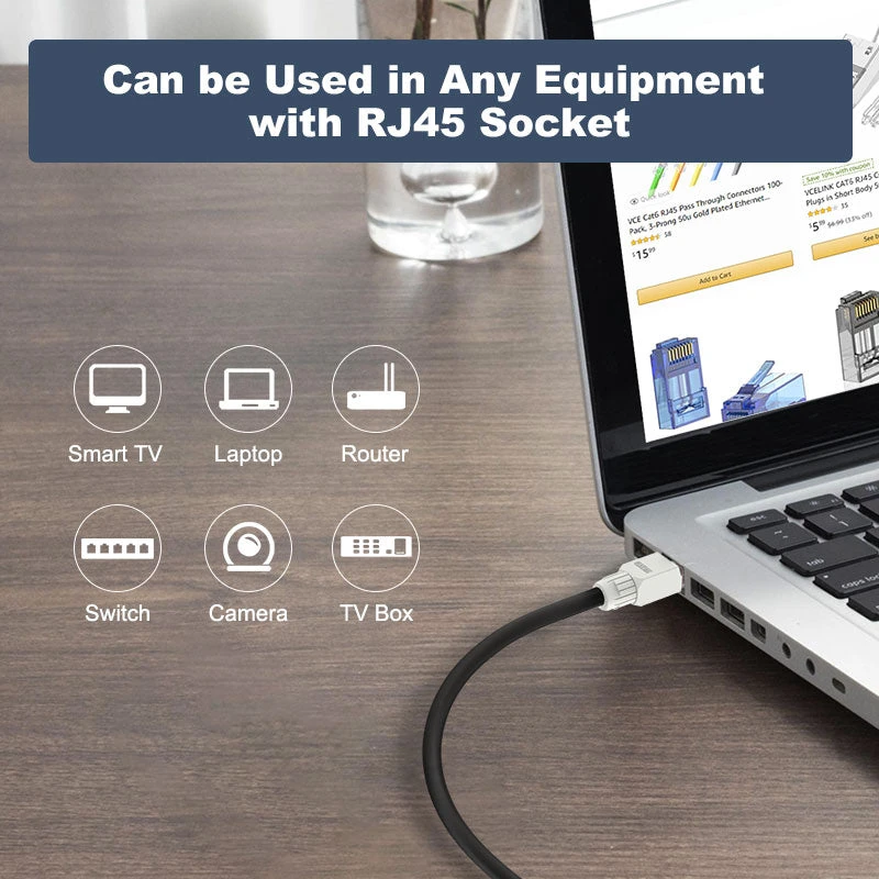 -Compatible with devices with RJ45 standard interfaces e.g. printers, routers, PCs, servers, switches, and hubs;