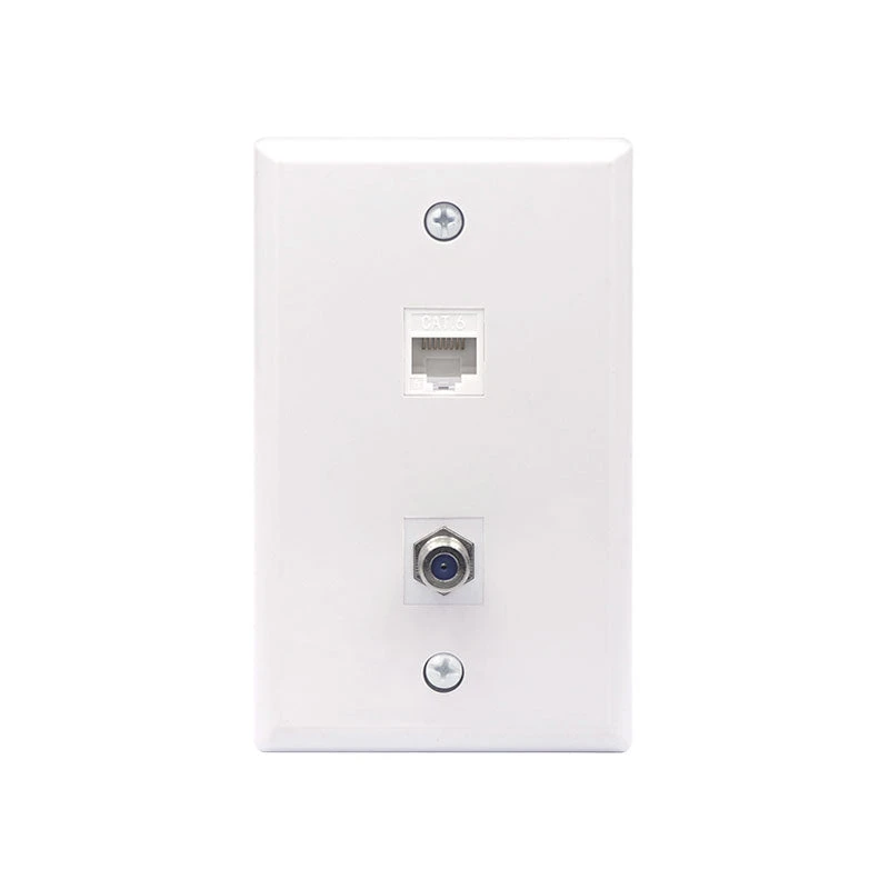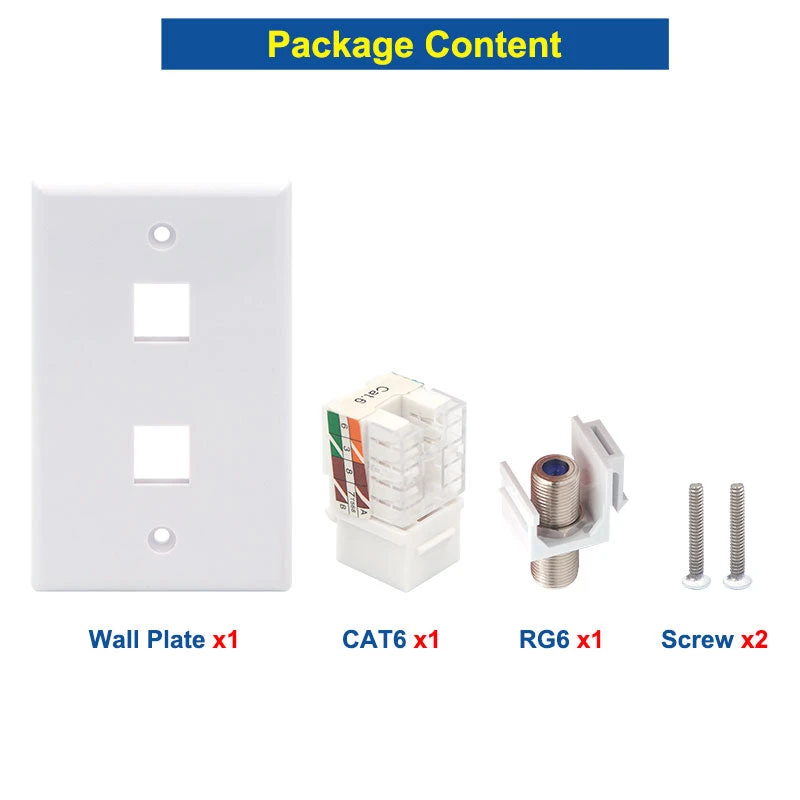 VCELINK Cat6 and Coax Wall Plate include one two-port blank plate, one Cat6 keystone jack, and one RG6 coaxial keystone jack.