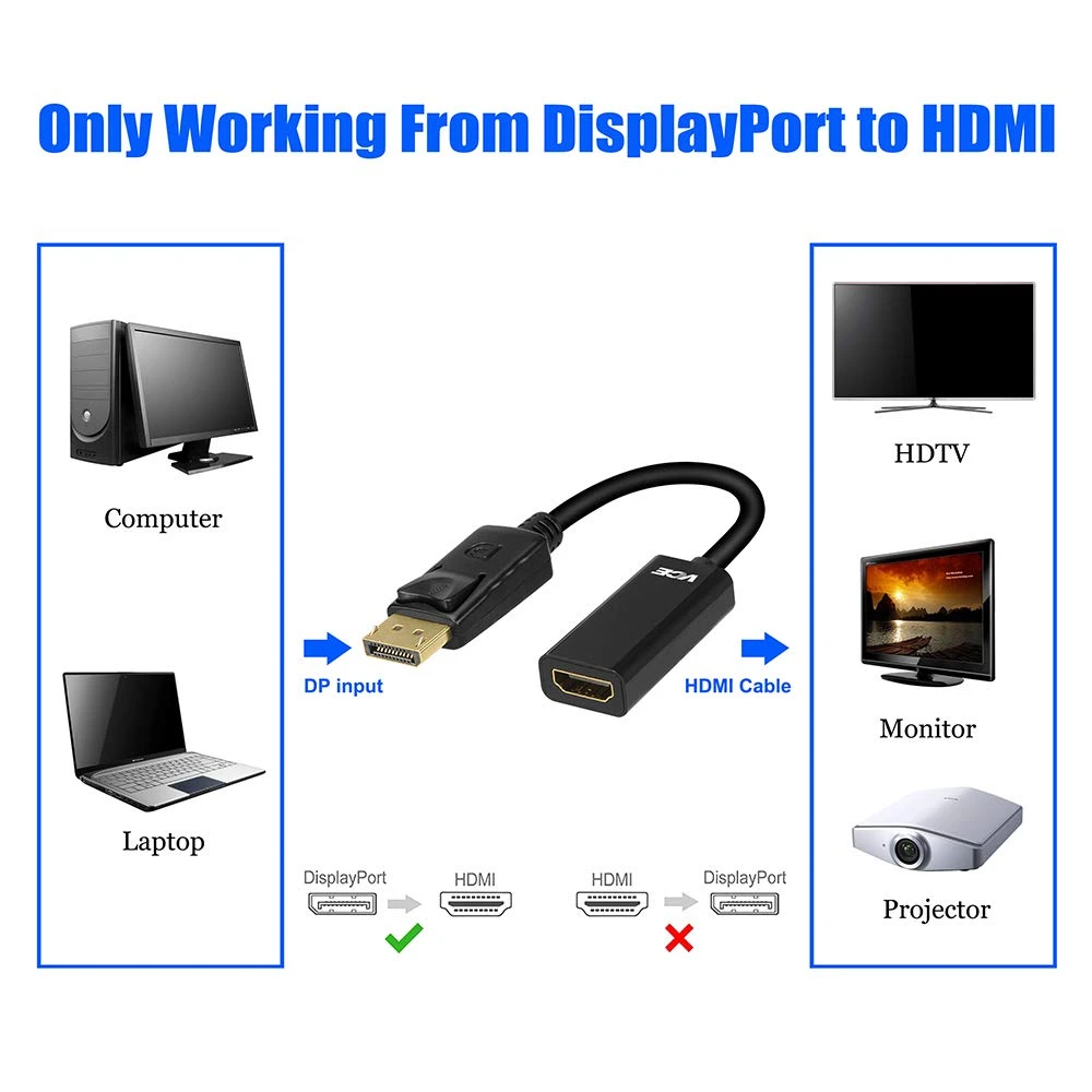 VCELINK DisplayPort to HDMI Converter delivers high-definition audio and video from your computer (graphics card port) to high-definition televisions or projectors. It is ideal for watching videos, playing games, or working from home. The gold-plated connectors offer stable signal transmission, and the double copper shielding improves the data transmission stability.