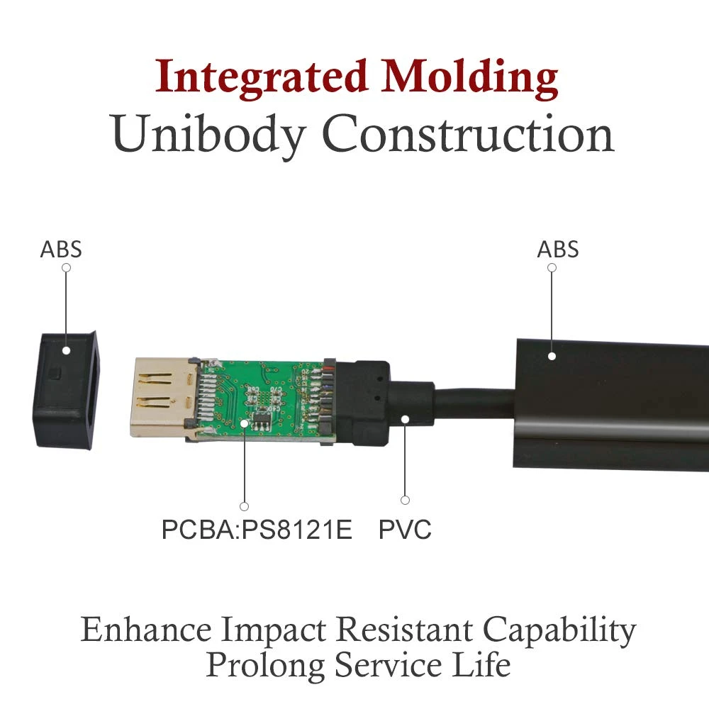 Please note that this Displayport male to HDMI female adapter is a one-way transmission (From DP to HDMI). Additionally, it isn’t compatible with a USB port.