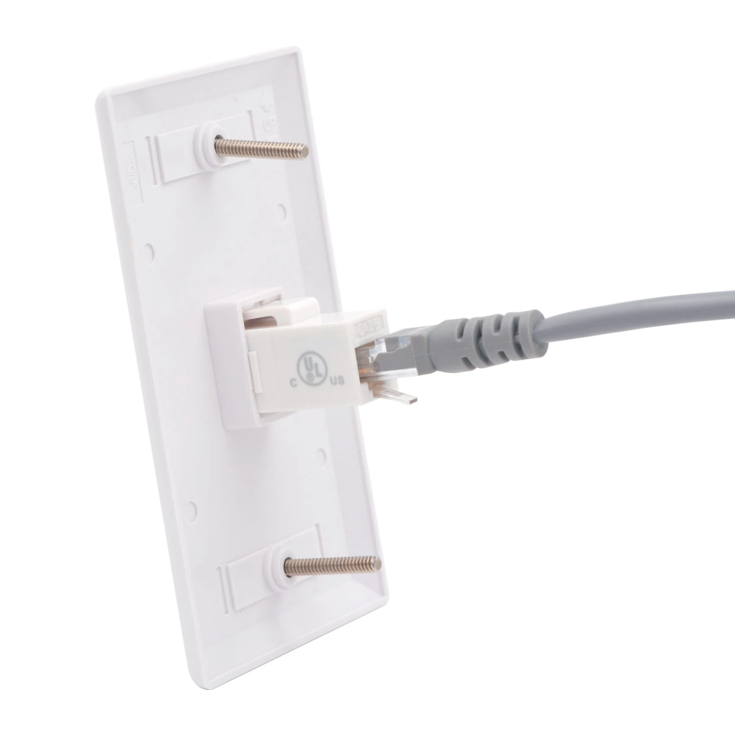 Our Ethernet Wall Plate features a single-port blank wall plate and a Cat6 coupler, which is designed to organize your network cables for a tidy and clean look.