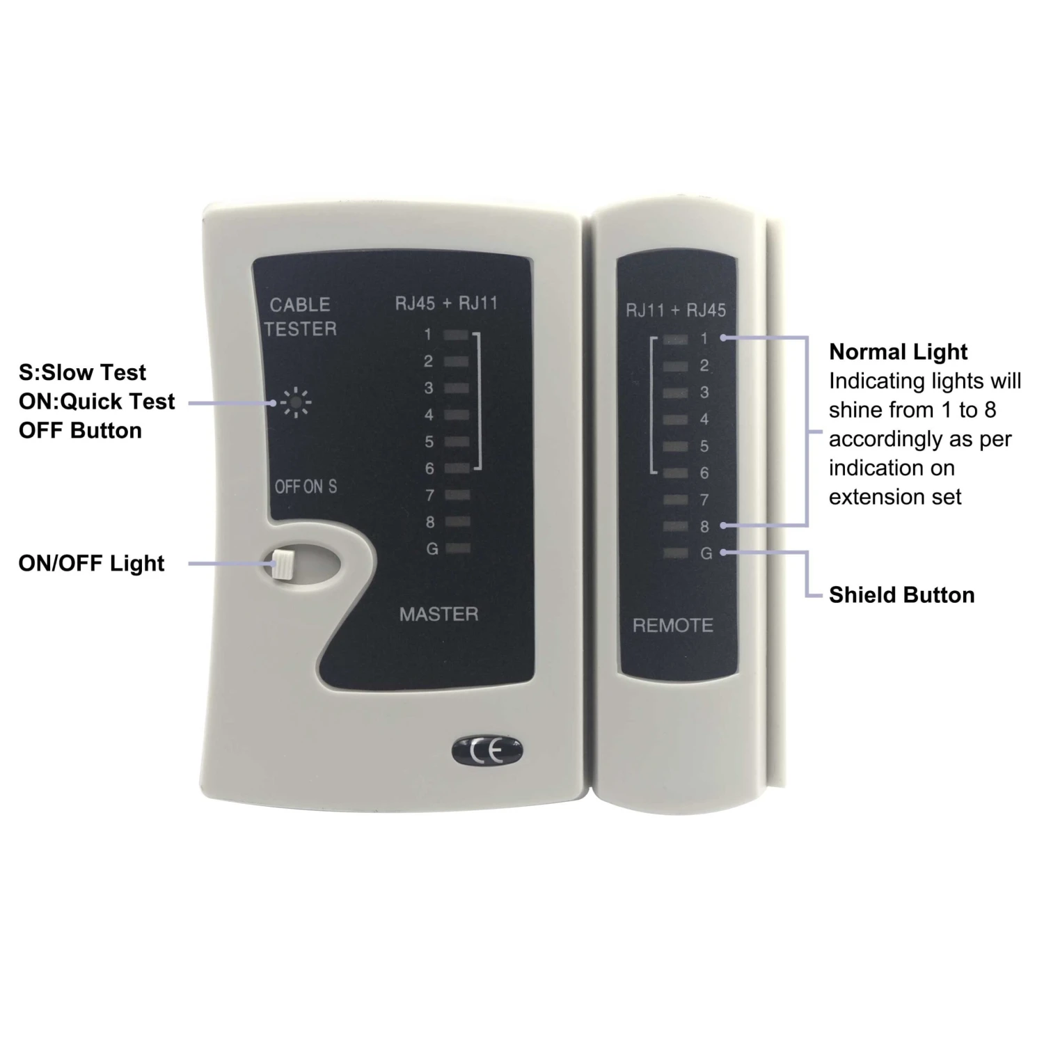 –High-quality LED indicators, suitable for testing network patch cables and telephone cables;