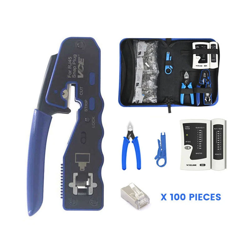 VCELINK Cat6 cable crimping tool kit is an ideal solution for all your networking requirements. The kit features a cutting and a stripping tool, catering to basic installation needs. It is suitable for both indoor and outdoor network installation projects.