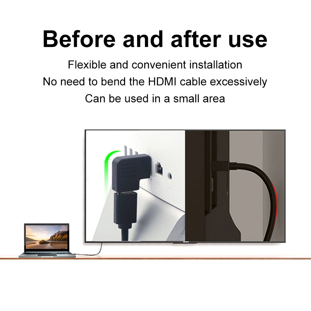 VCELINK HDMI 270 Degree Adapter is designed to optimize your viewing experience while ensuring durability and ease of use. The 270-degree design can change the direction of the HDMI cables to avoid cable bending and breaking. The compact shape of the HDMI adapter is suitable for narrow corners, such as the back of the television. With this connector, you can effectively solve the problem of short cables.