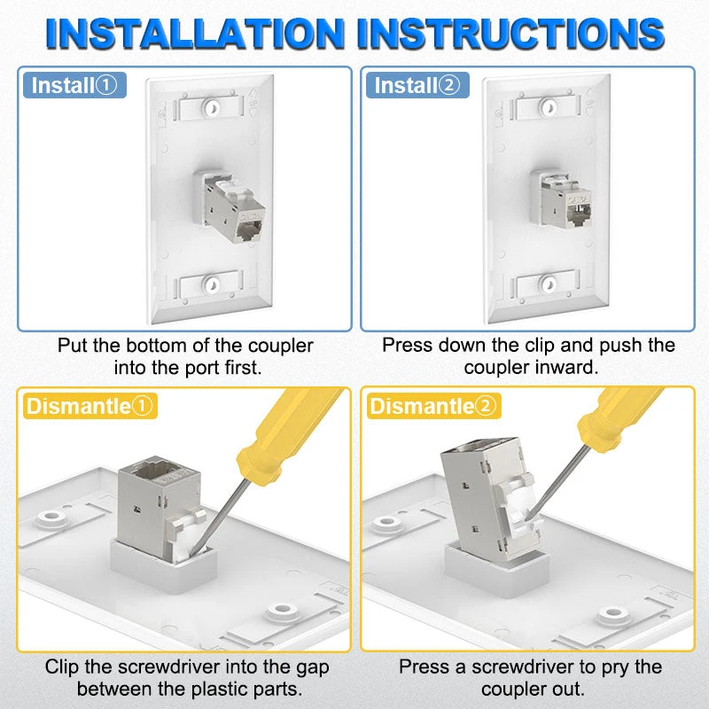 -Enjoy high-speed data transmission with our RJ45 keystone coupler supporting speeds up to 10 Gbps;