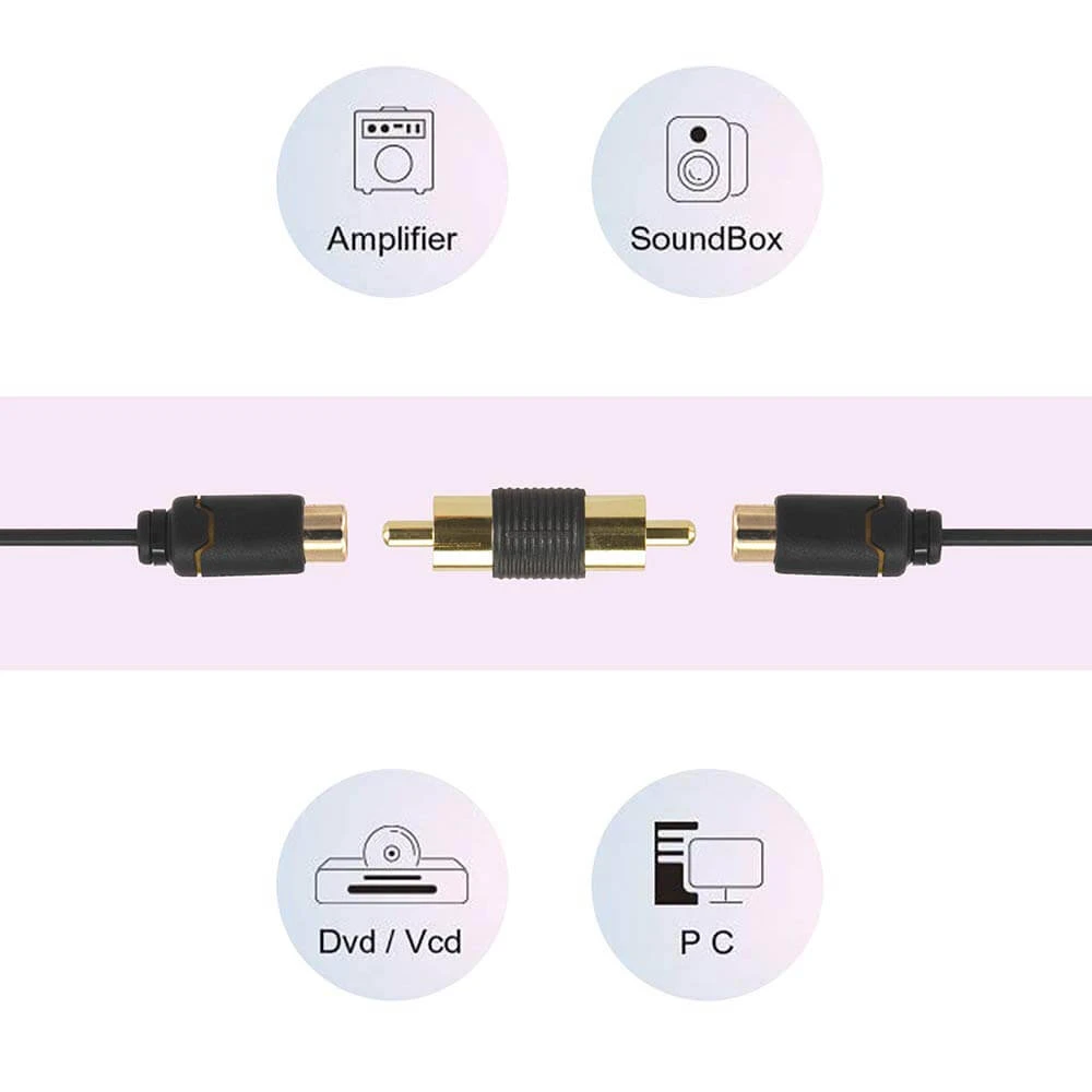VCELINK RCA male-to-male adapter is ideal for AV audio cable, video cable, and other RCA interface extension connections for the stable transmission of sound. This RCA male-to-male connector is compatible with multiple devices, set-top boxes, amplifiers, DVD audio, and video signal transmission to multiple public conversion audio and video signal interface devices. Plug-and-play, easy to use.