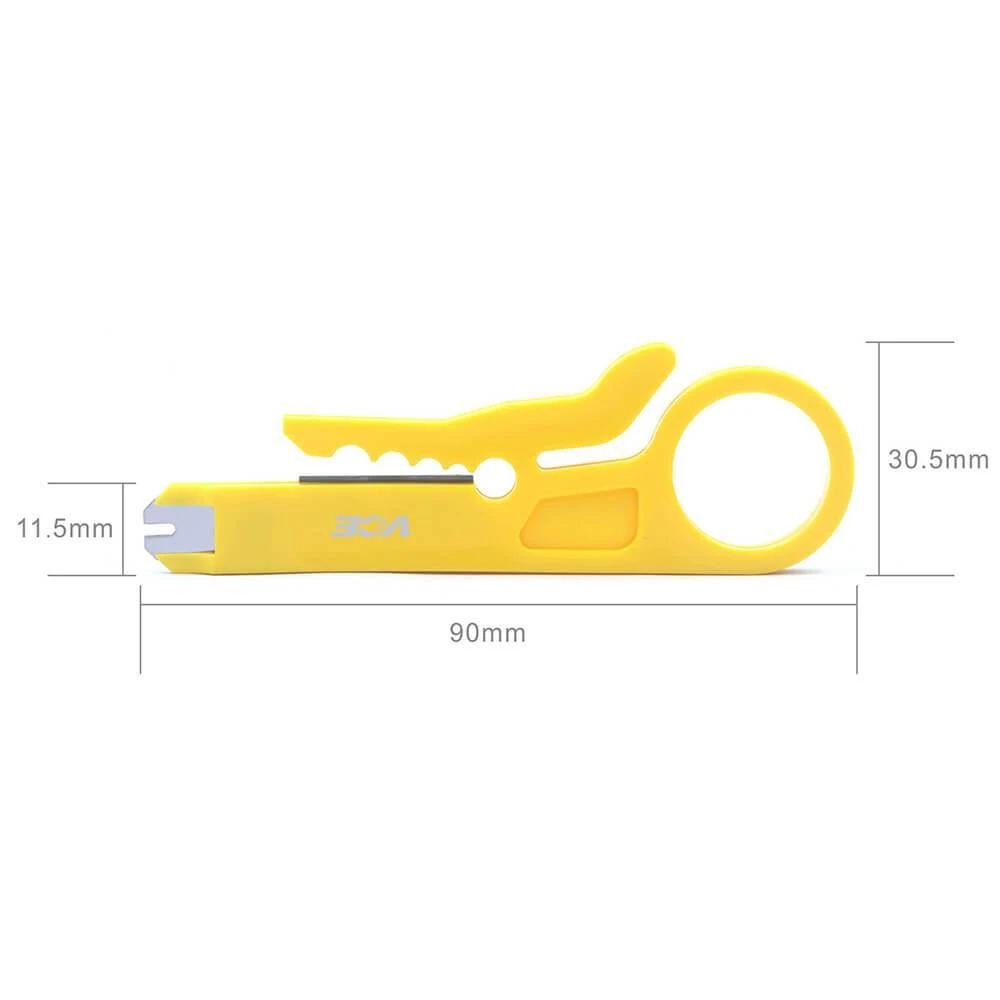 VCELINK small wire stripper is ideal for stripping network cables or telephone cables, such as Cat5, Cat5e, and Cat6 Ethernet cables. In addition, it also can be used to insert wires into keystone jack slots. The small and portable design makes it easy to carry in your pocket or tool kit. The yellow housing also makes it easy to identify in your toolbag.