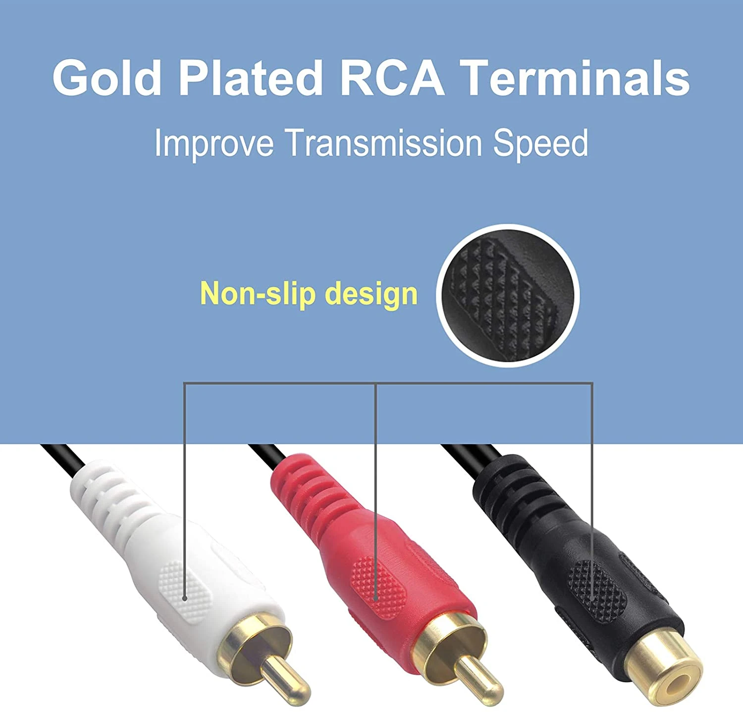 The oxygen-free copper coupled with double shielding guarantees optimal audio quality. Additionally, its 8-inch short cable design facilitates easy connections while minimizing signal transmission loss. Moreover, the red and white housing aids in distinguishing between the left and right channels, enhancing user convenience.