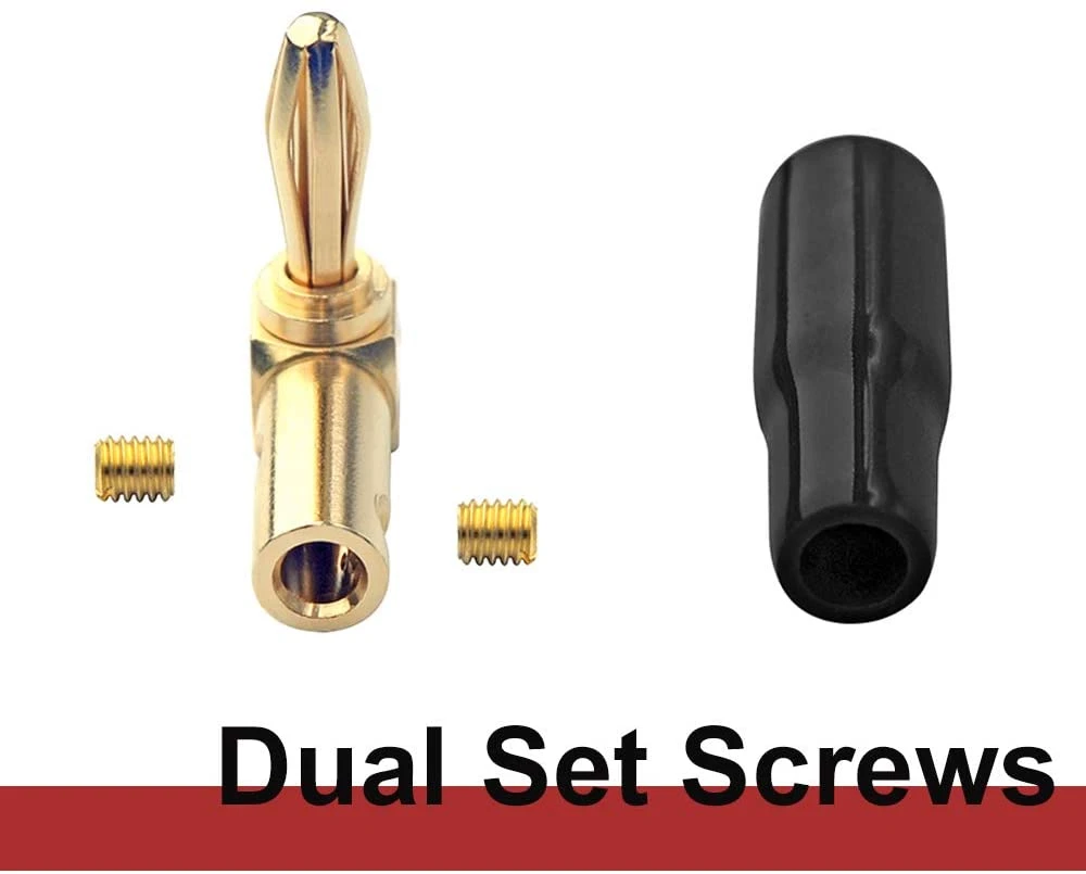 Featuring a standard 4mm banana tip, our plugs are compatible with a wide range of audio cables (10-20 AWG) and equipment, including speakers, A/V receivers, amplifiers, surround sound systems, and banana wall plates with banana-style binding posts.