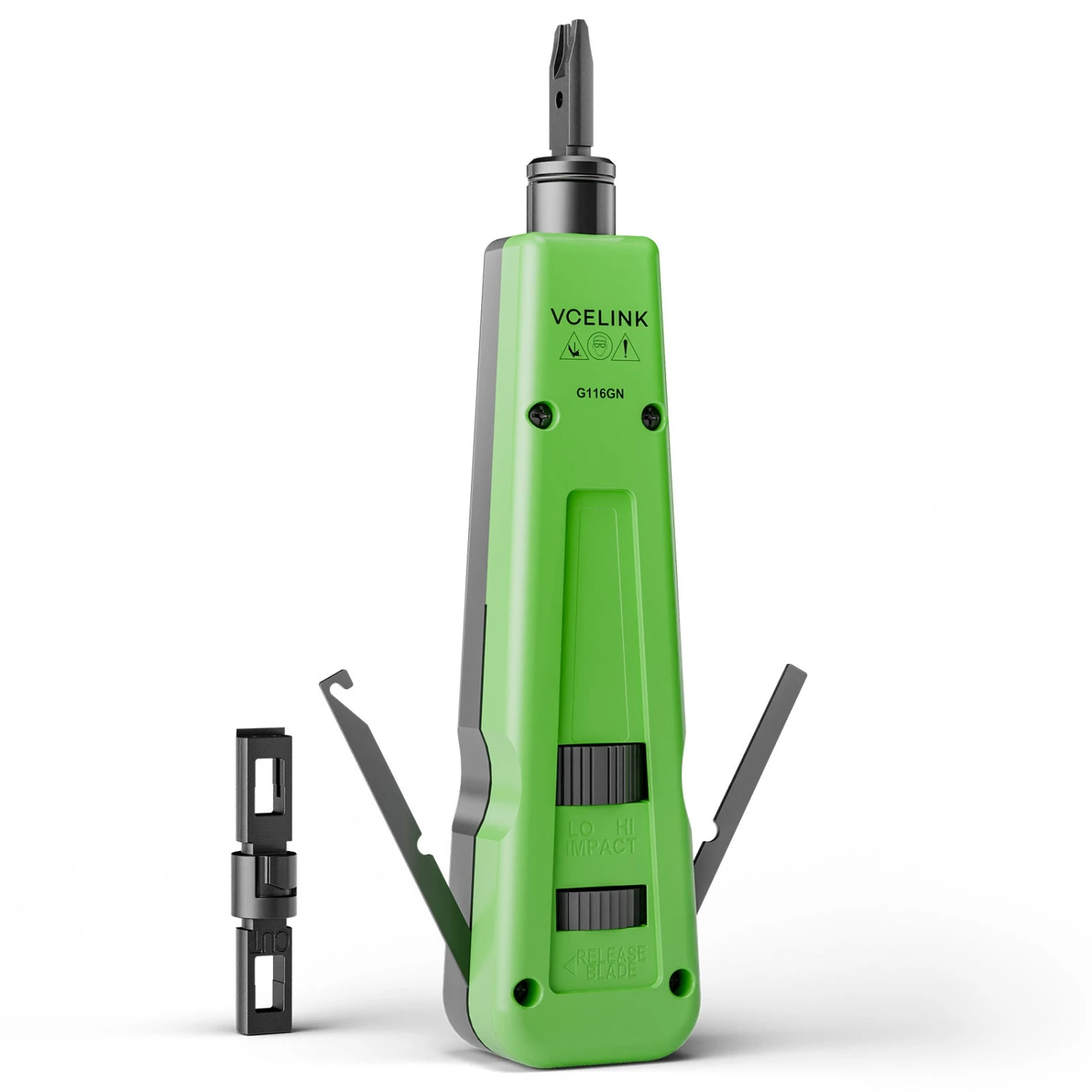 VCELINK 110 Punch Down Tool is your good partner for network and telephone wiring. Featuring 66/110 blades, it’s perfect for Cat3, Cat5, Cat5e, and Cat6 keystone jacks and patch panels. The punch-down tool simplifies hooking, punching, and cutting, making it a must-have for efficient network installation.