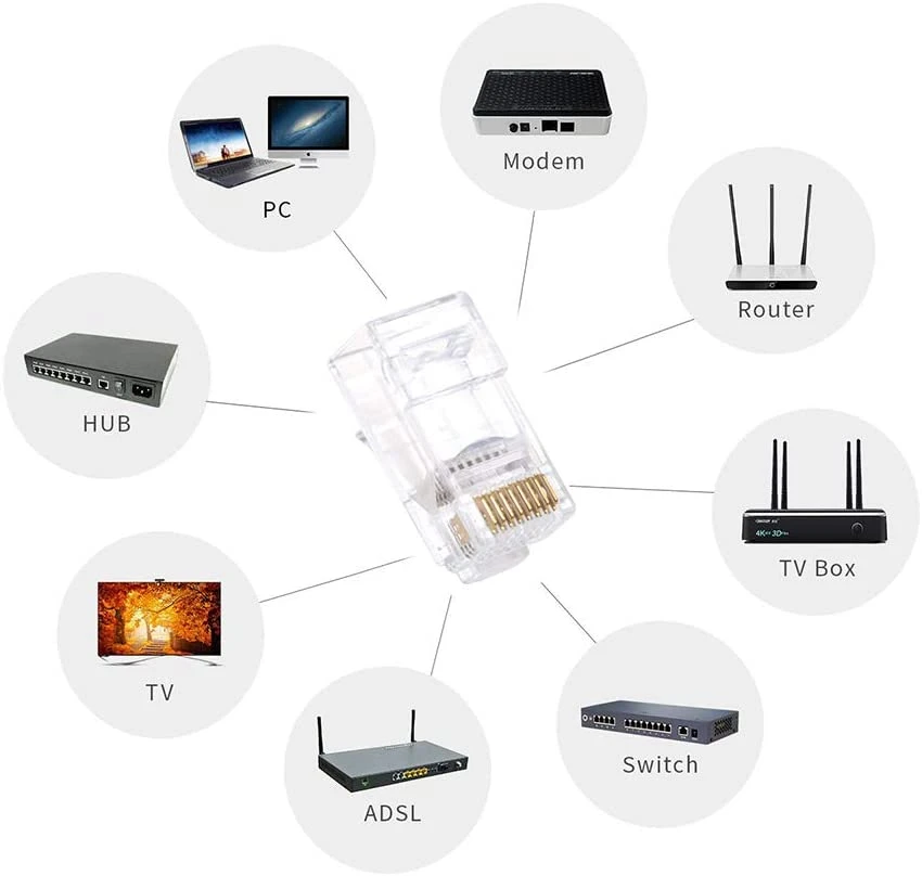 The Cat6 connector is compatible with Cat6 cables and backward compatible with Cat5e and Cat5 cables.