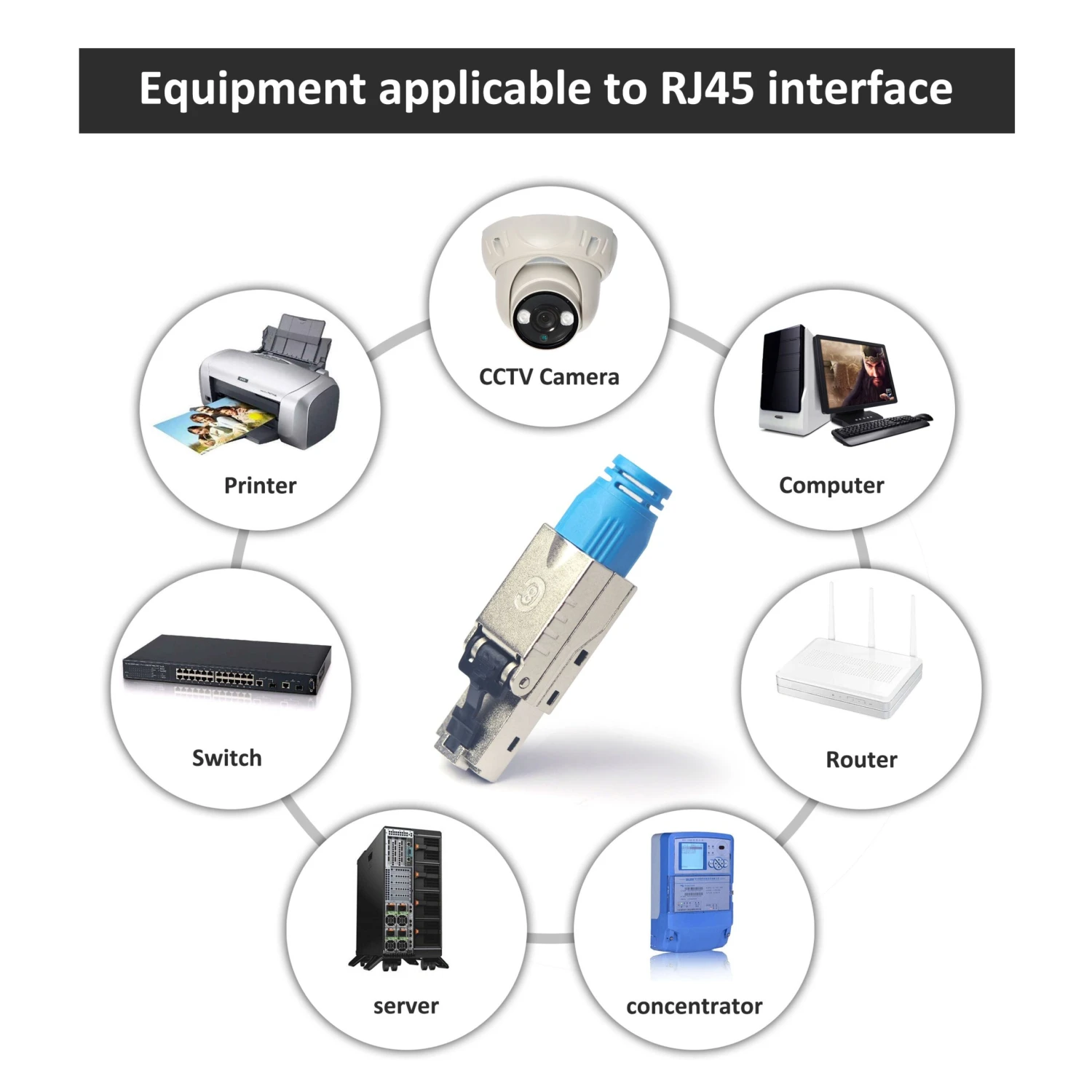 This Cat8 connector offers easy installation and enhanced efficiency. Whether you’re a professional or a DIY enthusiast, our RJ45 connector allows for quick setup. It is perfectly suitable for devices, such as CCTV cameras, computers, routers, servers, switches, etc.