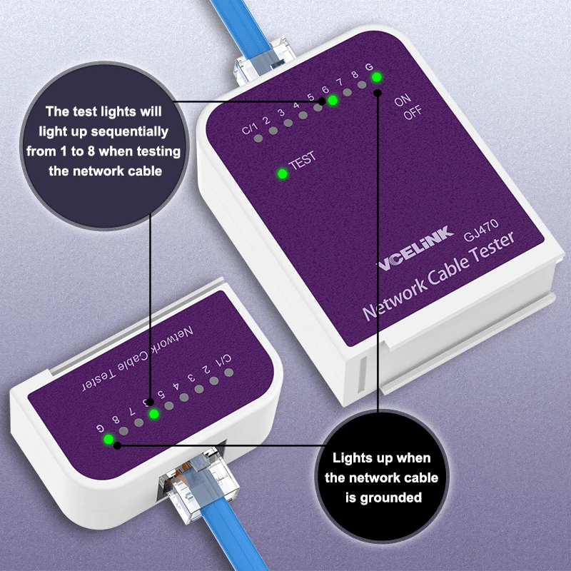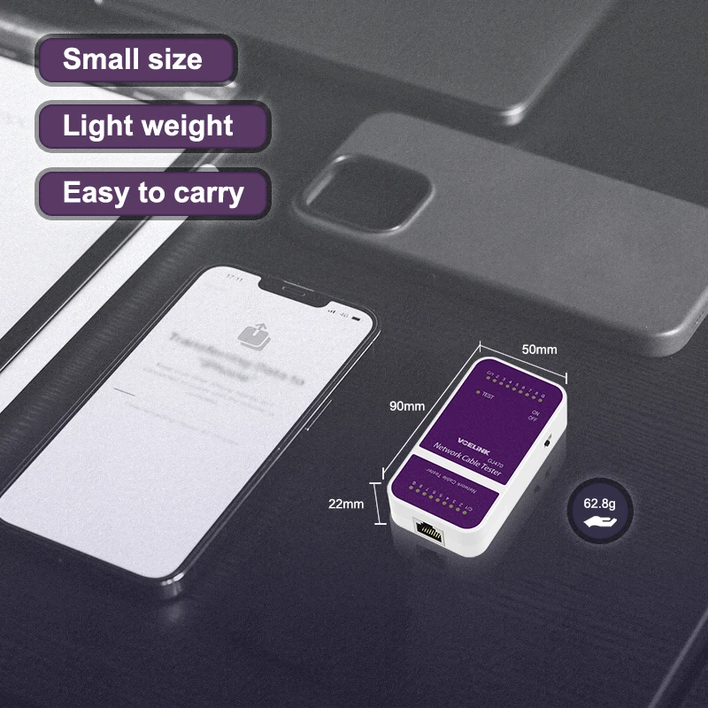 VCELINK LAN tester is the perfect tool to quickly and efficiently test Ethernet cable issues. The LAN tester is an easy-to-operate, portable device that professionally diagnoses and tests a variety of LAN issues. Its portability and convenience make it ideal for on-site maintenance and diagnostic tasks.