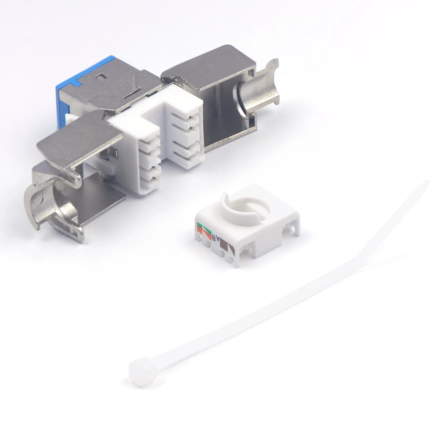 Featuring a metal shielding construction, this keystone jack offers superior resistance to interference, making it ideal for use in extreme conditions where signal integrity is paramount. The gold-plated contacts ensure stable and reliable data transmission. With eight color options available, our shielded Cat6a keystone jack provides easy cable labeling in large network installations, simplifying identification and organization for efficient cable management. The keystone jack is compatible with wall plates, surface mount boxes, or patch panels.