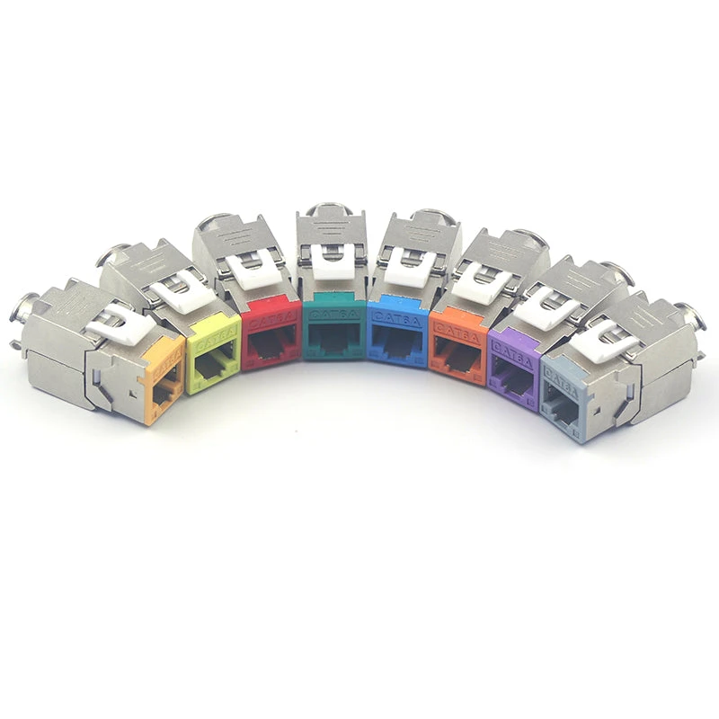 Upgrade your network infrastructure with our 180-degree Cat6a keystone jack. With a minimum order quantity of 150 sets of 8 colors, feel free to contact us for other combinations tailored to your unique requirements.