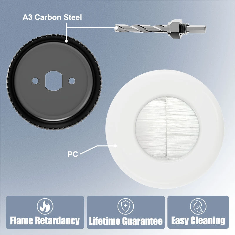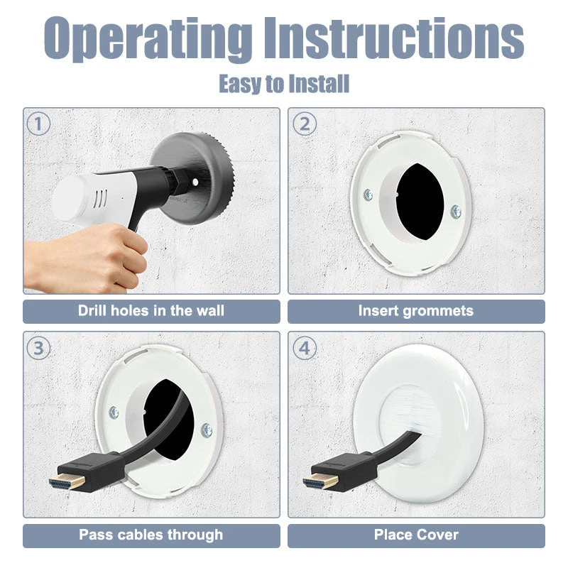 Simplify your cable organization with the VCELINK Round Brush Wall Plate. Featuring two round wall plates and a convenient hole opener, this product can organize TV, network, and audio cables for a clean and tidy environment.