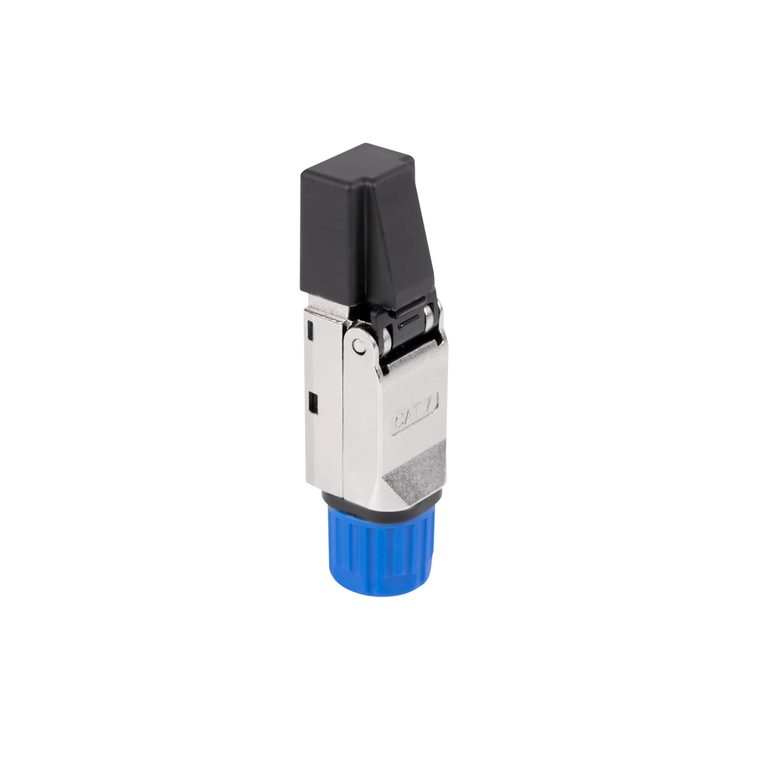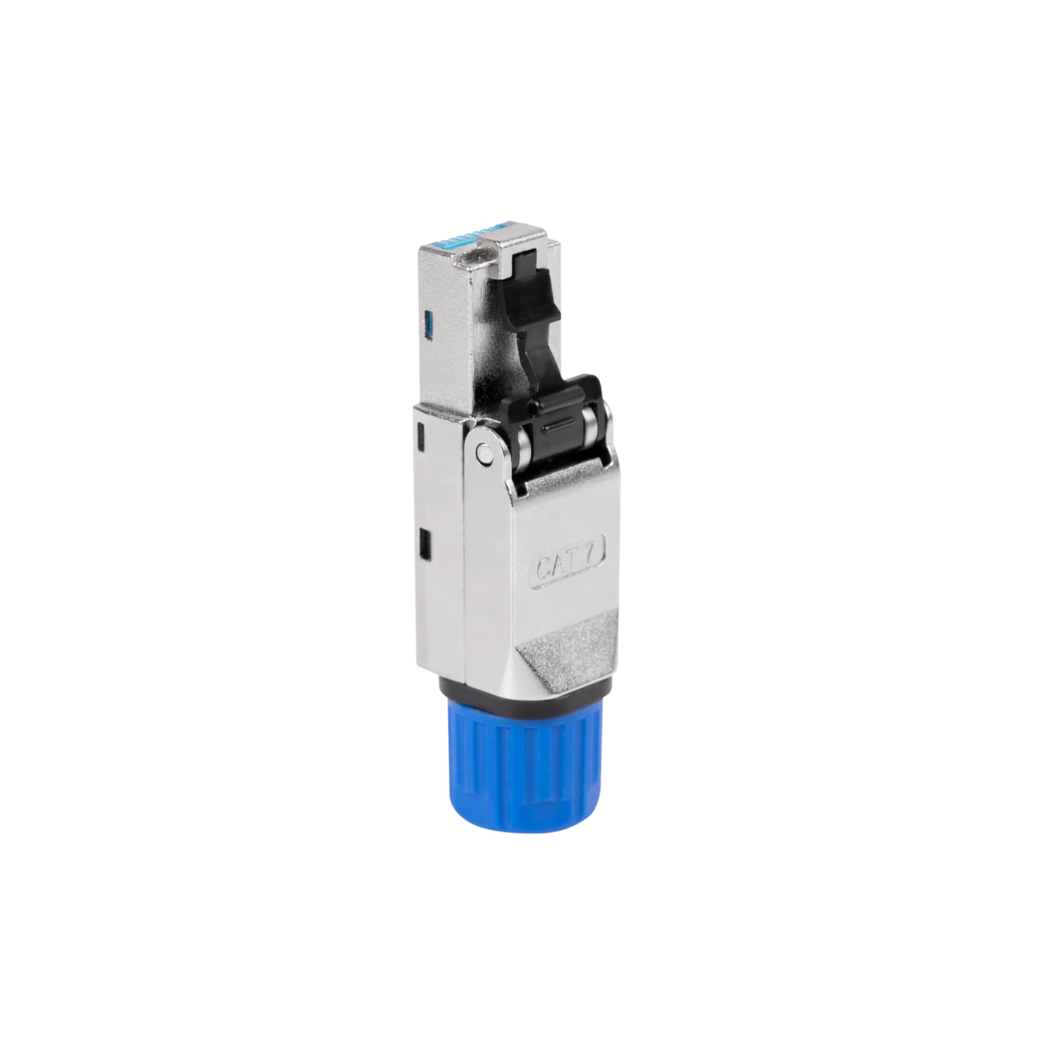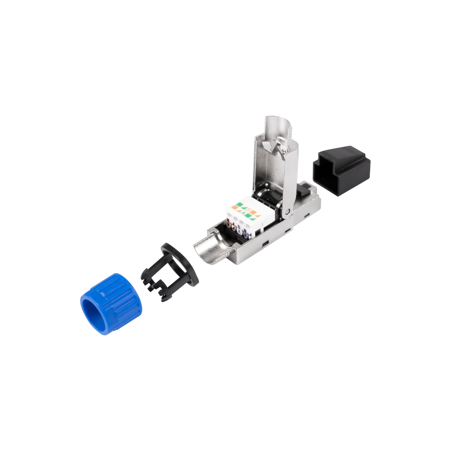 VCELINK Toolless Cat7 RJ45 Plug simplifies network cable termination without any professional RJ45 crimping tools, ideal for both DIYers and professionals. It is backward compatible with Cat6a and Cat6 shielded or unshielded cables. The metal shielding and gold-plated contacts ensure stable data transmission, making it suitable for server rooms and data centers.